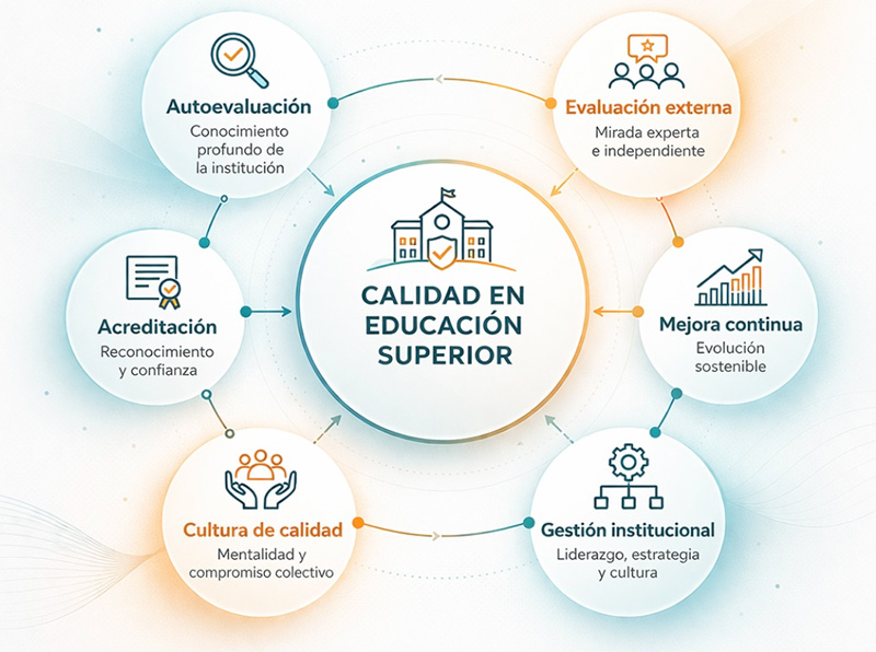 Fundación sin fines de lucro con la misión de aportar a la mejora continua, por medio del trabajo desde un clima de confianza y confidencialidad con Universidades, CFT, IP y otros centros de educación superior para instaurar una cultura de calidad.